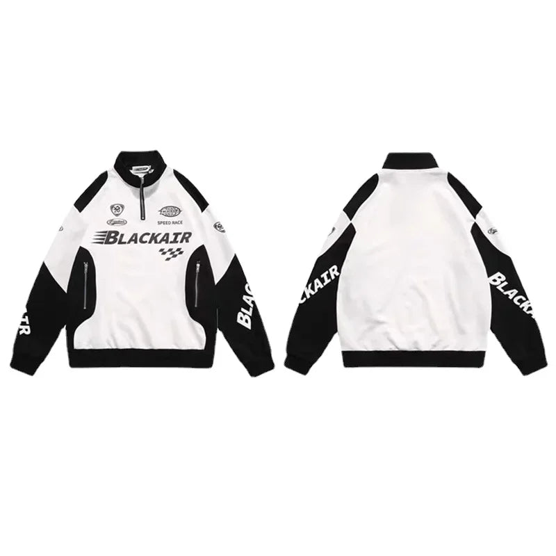 このスウェットシャツは、2000年代初頭のハイテク時代からインスピレーションを受けており、大胆なスタンドカラーとコントラストのあるパッチワークデザインで、懐かしさとトレンドを完璧に融合しています。丁寧に作られたこのパーカーは、ハーフジップが特徴で、カジュアルな外観と都会的なエレガンスの両方を提供します。文字とロゴの目を引くプリントが衣服にユニークな視覚的次元を加え、単なるスウェットシャツ以上のスタイルステートメントとなっています。スピードとテクノロジーを彷彿とさせる「BLACKAIR」の文字とグラフィック要素で飾られた長袖には、実用的なジッパー付きポケットが付いており、このアイテムの機能性を強調しています。汎用性の高いモノクロームの色合いで作られており、シンプルで合わせやすい外観を維持しながら目立つことができます。オルタナティブファッションのファンでも、ワードローブをリフレッシュするためのユニークなアイテムを探しているだけでも、このスウェットシャツはコレクションに欠けているハイライトになります。お気に入りのジーンズやテックウェアパンツと組み合わせれば、快適さと Y2K の雰囲気が融合した完璧なスタイルが完成します。