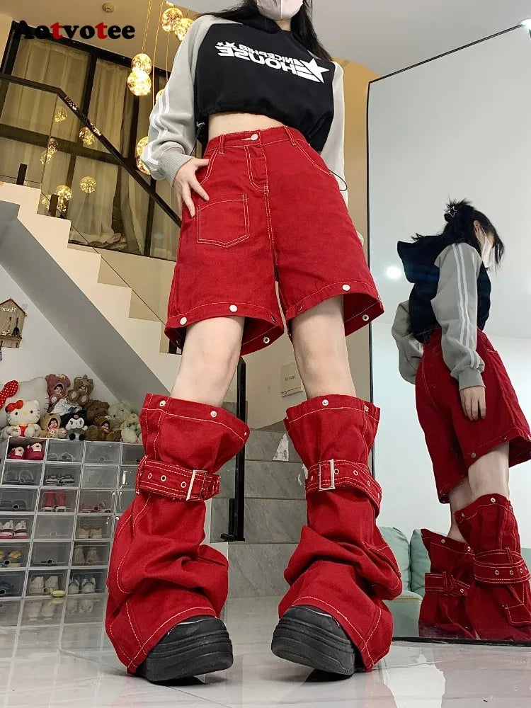 ハイウエスト Y2K ワイドレッグ デニムパンツ レディース