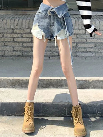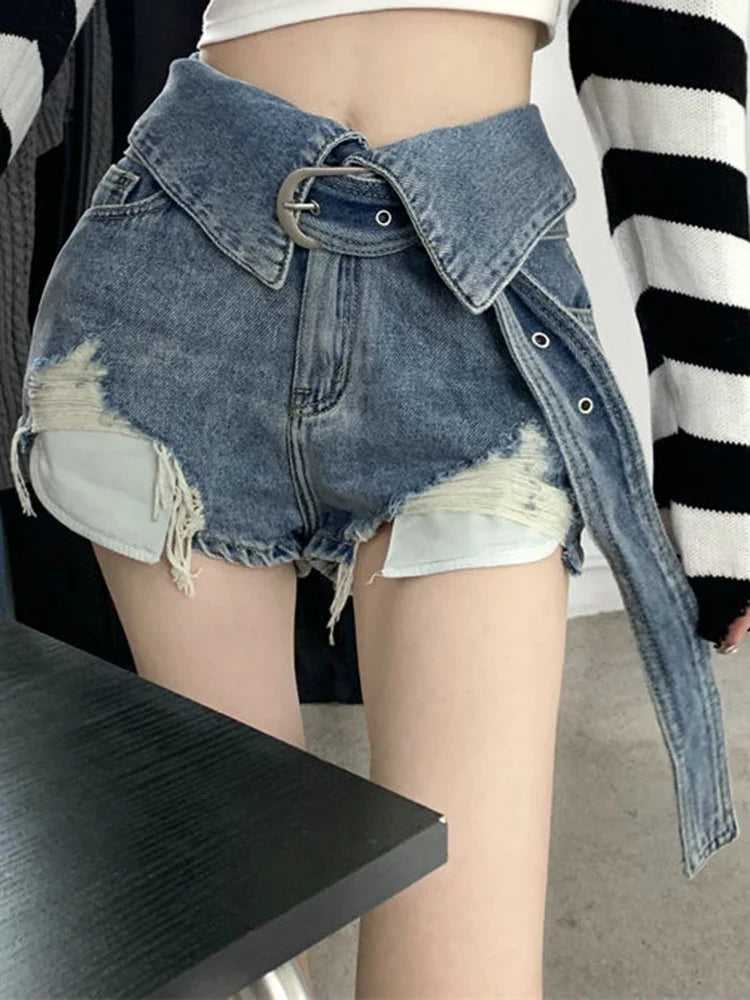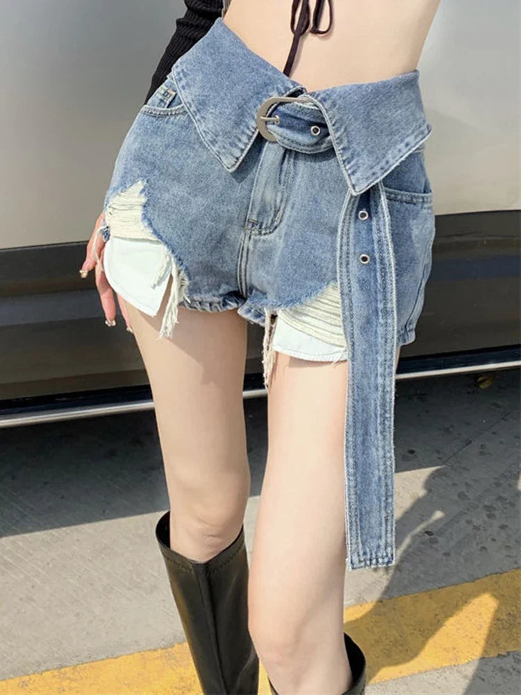 破れたハイウエストのデニム ショーツで、大胆なオルタナティブ ファッションの世界に浸りましょう。自分らしさを大胆に表現したい女性には欠かせないアイテムです。Y2K の美学にインスパイアされ、反抗的な精神を全面に押し出した女性のためにデザインされたこのショーツは、ワードローブに個性的なタッチを加えるのに最適です。デコンストラクトでアシンメトリーな外観が特徴的なこのショーツは、自由と非順応性の感覚を呼び起こします。ハイカットと戦略的な破れの組み合わせは、ファッショナブルでありながら時代を超越した美学を表現しています。メタル バックル付きのユニークなベルトがパンツに洗練されたタッチを加え、体型にぴったりフィットします。高品質で伸縮性の低いデニムで作られているため形が崩れにくく、このショーツは快適さを約束するとともに、若々しいエネルギーをルックスに注入します。