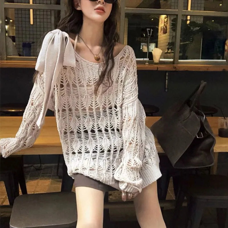 春は、大胆さと個性が感じられる Coquette Y2K ニット & 透かし編みセーターで始めましょう。ミレニアム ファッションのダイナミクスにインスパイアされたこのオーバーサイズのセーターは、着心地が良くトレンド感も抜群です。オープン ニットで作られており、ラフでありながら洗練された美しさを醸し出します。Coquette セーターは、人混みから抜け出す勇気のあるオルタナティブ ファッション愛好家のためにデザインされています。2000 年代の気楽な精神とニットウェアの時代を超越した魅力を巧みに組み合わせています。透かし編みのディテールは、穏やかな日に心地よい通気性を提供するだけでなく、肌との印象的な相互作用を生み出します。ゆったりとしたフィット感のこのアイテムは、クリエイティブな重ね着に最適で、さりげなく自分のスタイルを輝かせます。片方の肩をさりげなく露出するエレガントなネックラインが特徴で、このアバンギャルドなデザインにさりげなくセクシーなタッチを加えています。
