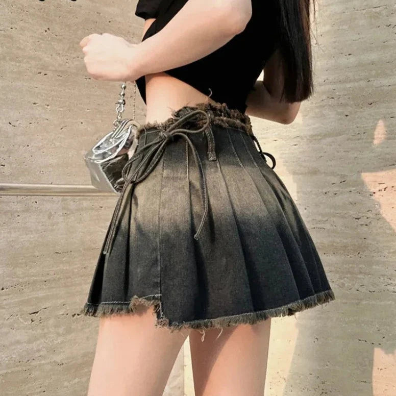 ヴィンテージ スタイルと現代的な大胆さを組み合わせたい方に最適な、ゴシック デニム Y2K プリーツ スカートで、オルタナティブ ファッションの真髄を発見してください。この高品質のデニム スカートは、なめらかなシルエットと丁寧に構成されたプリーツで、ゴシック サマーの真髄をとらえています。ダークで丁寧にウォッシュ加工されたトーンが、反抗的でありながら洗練された雰囲気を醸し出しています。構造化されていないデザインは、ほつれたエッジによって強調され、魅力的なパンクロックの精神を醸し出しています。ウエストの調節可能なドローストリングが完璧なフィット感とボヘミアンな雰囲気を醸し出します。軽やかさと詩情、そしてデニムのカジュアルな美しさが組み合わさったこのアイテムは、夏のワードローブに欠かせないアイテムです。ベルリンの中心部を散歩するときも、太陽が降り注ぐハンブルクのフェスティバルでも、このスカートはあなたのユニークなスタイルを披露する味方になります。