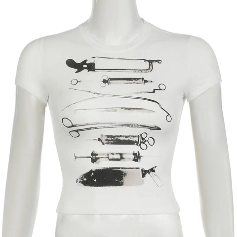 オルタナティブ ゴシック T シャツ プリント 半袖 クロップトップ O ネック