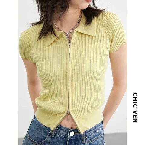 明るいパステルイエローのニットカーディガンで、柔らかな世界に浸ってください。あなたのオルタナティブワードローブに新鮮なタッチを加えるためにデザインされています。このフィットしたカーディガンは、繊細な上質なニット生地で編まれており、一日中比類のない快適さを提供します。ショートスリーブとクラシックなポロカラーがプレッピーシックな雰囲気を添え、フロントジッパーがモダンで実用的なタッチを加えています。パステルイエローの色合いはどんな服装も明るくし、カジュアルなジーンズや大胆なコントラストのために黒いスカートと見事にマッチします。リブ仕上げがニット生地の品質を強調し、魅力的なシルエットを作り出します。音楽フェスティバルに行くときでも、友達と一日出かけるときでも、このカーディガンは、さりげなくスタイリッシュに群衆から目立ちたい人にとって魅力的な資産です。