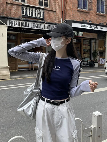 最新の長袖 Acubi AestheticTech トップスを着て、現代的なストリートウェアの世界に飛び込んでください。テクノロジーのサブカルチャーにインスパイアされたこの衣服は、快適さとトレンドを組み合わせた紛れもなくモダンなスタイルです。高品質の素材で作られており、一日中最適な着用感を保証する柔らかく耐久性のある構成が特徴です。メタリックグレーの長袖は、ディープネイビーブルーのトップスのボディとエレガントなコントラストを生み出し、細部へのこだわりとサイバーネティックな美学へのこだわりを示しています。Acubi のロゴは中央にさりげなく配置され、個性と自己表現を重視するブランドを示しています。ラウンドネックの洗練された仕上げが衣服に洗練された雰囲気を与え、大胆なクロップトップのカットがシルエットをスタイリッシュに強調しています。コーヒーをすすりながらでも、友人との夜に出かけるときでも、この Acubi AestheticTech トップスは、大胆なサングラスやスタイリッシュなヘッドフォンなどのトレンディなアクセサリーと自然にマッチします。ハイウエストのプリーツスカートと合わせれば、プレッピーグランジ風に、ダメージジーンズと合わせれば、完璧なeガールルックに。もう迷わず、このマストハブなテックストリートウェアでワードローブをグレードアップしましょう!