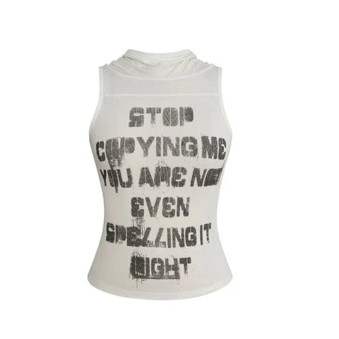 2000 年代のトレンドにインスパイアされたこのエキサイティングなクロップトップには、「私の真似はやめてください。お金もちゃんと使っていないのに」という挑発的なメッセージが込められています。軽量で通気性のある素材で作られており、外出時に快適さとエレガントさを保証します。フードがストリートウェアの雰囲気をプラスし、群衆から目立ちたい人に最適です。