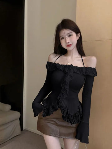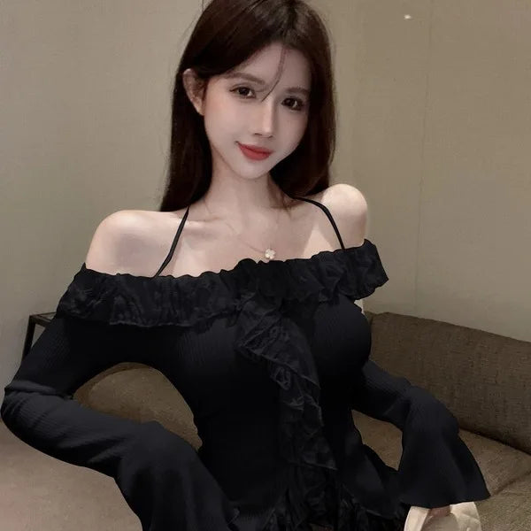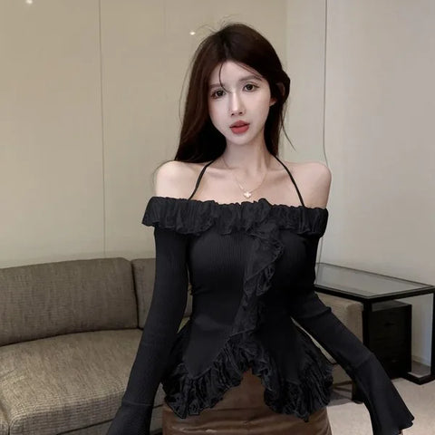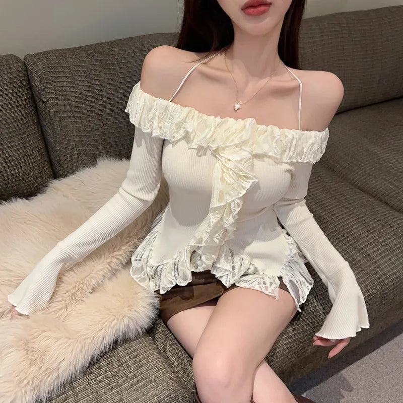 E-Girl スタイルの美しいプルオーバーで、大胆さとロマンスのタッチでワードローブをリフレッシュしましょう。快適さと耐久性を約束する柔らかいニットで作られたこのオフホワイトのトップスは、季節の変わり目の服装に最適です。オープンショルダーのデザインに繊細なスパゲッティストラップがアクセントになり、さりげない誘惑を誘います。現在のトレンドを反映したこのプルオーバーは、ネックラインに沿って揺れ、フロントに流れる幅広のフリルトリムで遊び心のある雰囲気をプラスしています。戦略的に考え抜かれたカットでヴィンテージの雰囲気を現代風にアレンジし、着る人の自然な魅力を際立たせながら、群衆から際立たせています。フレアのロングスリーブが現代的なスタイルをエレガントに完成させ、動きの中で流れるようなエレガンスを保証します。リブ編みのニットがシルエットを強調し、体にぴったりフィットし、真の繭のような柔らかさを保ちます。