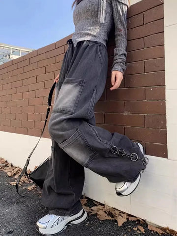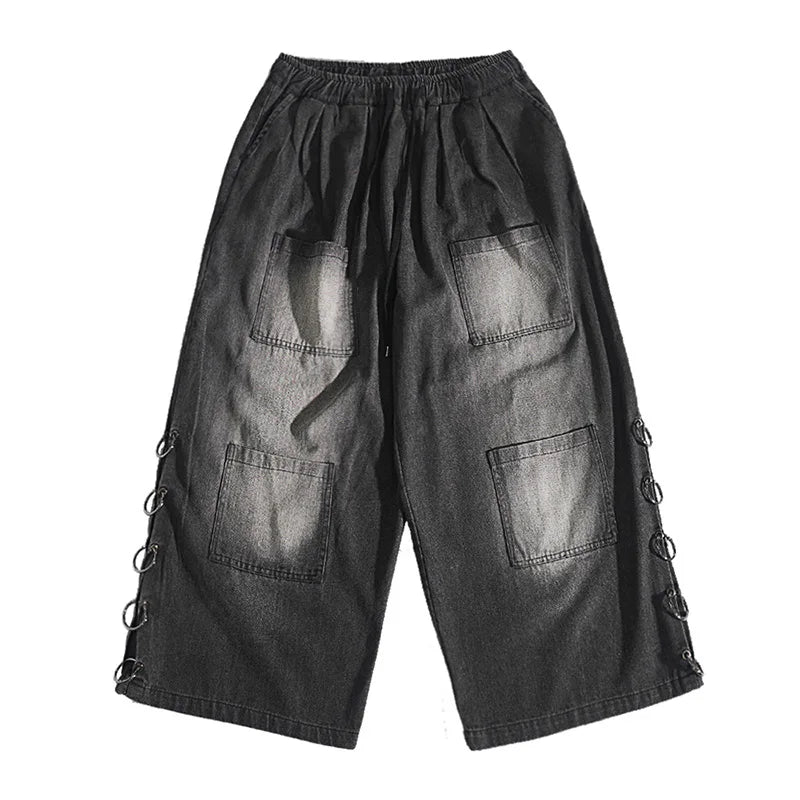 リングとワイドレッグのゴシックパンクバギージーンズ