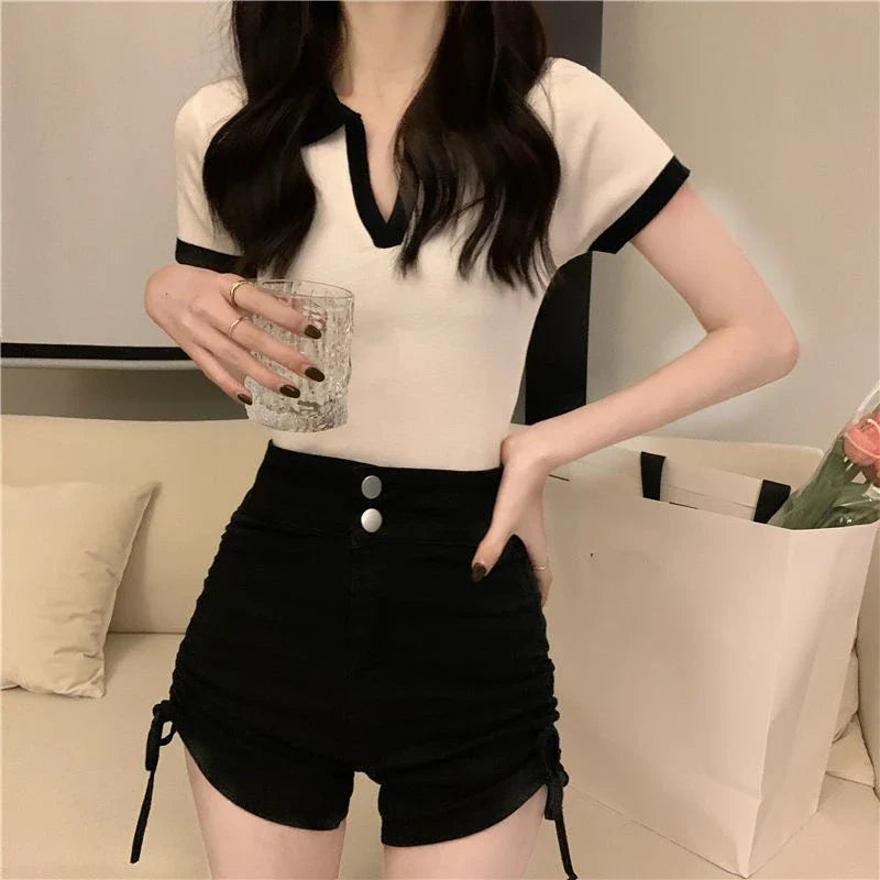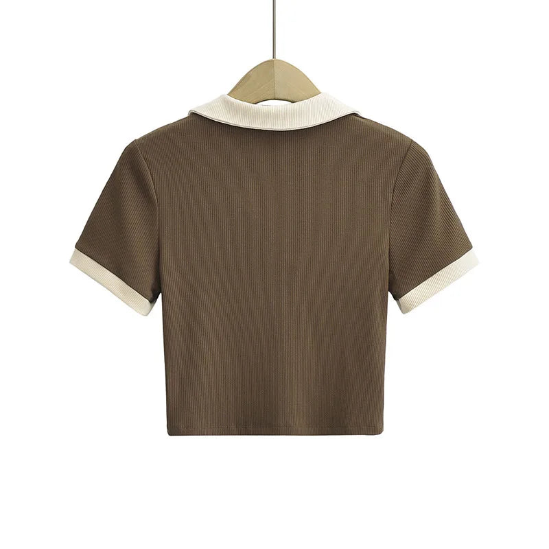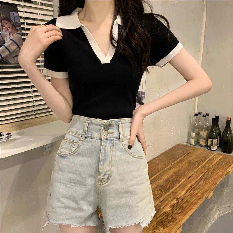 韓国風スタンドカラーポロシャツレディース 洗練された夏のデザイン
