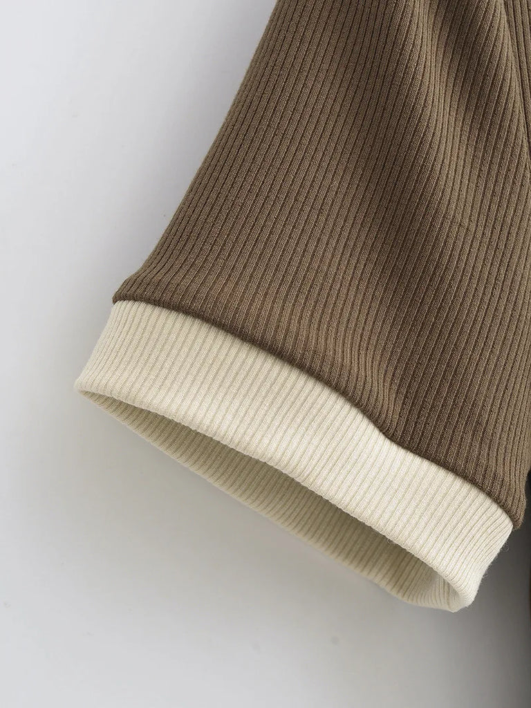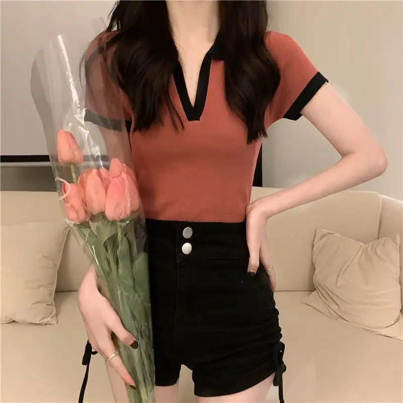 暑い夏の日にぴったりな、韓国風のスタンドカラーのレディースポロシャツで、軽やかさとエレガンスの極みを発見してください。このアイテムは、一日中快適さと爽やかさを保証する、柔らかく通気性のある生地で作られています。深いVネックにコントラストの効いた黒のパイピングが施されたこのポロシャツは、洗練さとカジュアルさを完璧に融合しています。さび色が、黒の袖口が付いた半袖によってやさしく強調され、衣服に独特の魅力とさりげない大胆さを与えています。ポロシャツは体にぴったりとフィットするように仕立てられており、体型にやさしく包み込みながら、動きやすさを完全に確保しています。フィットした黒のスカート、ジーンズ、またはショートパンツと合わせて夏らしいルックに。このトップスはすぐにワードローブの必需品になるでしょう。