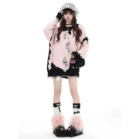 快適さ、スタイル、そしてオリジナリティの完璧な融合をお探しですか?このゆったりとしたラグランプルオーバーは、すべてのスイートなEガールがワードローブに揃えておきたいアイテムです。柔らかなピンクのメインカラーに大胆なブラックのアクセントが、忘れられない印象を添えます。全体にグランジ風のフェード加工を施したこのプルオーバーは、誰もが目を惹くデザインでありながら、最高の着心地を提供します。柔らかく厚手のニット素材を使用し、寒い冬の日に必要な暖かさを提供しながら、若者に人気のトレンドスタイルも兼ね備えています。ゆったりとしたフィット感で、どんな体型にもフィットし、抜群の着心地を約束します。