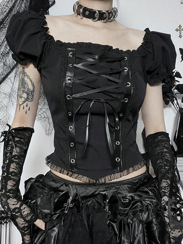 この美しいゴシック T シャツは女性用で、パフスリーブが付いています。この魅惑的な黒のトップスは、自分らしさを強調することを恐れない女性のためにデザインされており、オルタナティブなワードローブを高めます。深みのある黒の T シャツは、過ぎ去った時代の優雅さを呼び起こす短いパフスリーブが特徴で、フロントのクロスレースが神秘的なタッチを加え、想像力を刺激します。体にフィットするデザインがシルエットを優しく強調し、高品質の生地が柔らかく快適に体型を包み込みます。スクエアネックラインが頭の位置を際立たせ、大胆なチョーカーなどのアクセサリーを披露できます。ボリュームのあるチュールスカートと合わせても、ぴったりとしたパンツと合わせても、このゴシック T シャツは誰もが無関心ではいられないルックに欠かせないアイテムです。