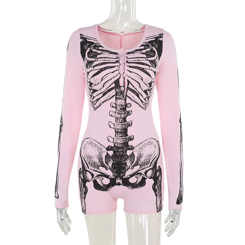 スケルトンプリントのロングスキニージャンプスーツで、魅力的なオルタナティブファッションの世界に飛び込みましょう。柔らかく伸縮性のある生地で作られており、体のラインにぴったりフィットし、大胆でありながらシックな外観を実現します。パステルピンクの色合いが新鮮なタッチを加え、細かい黒いスケルトンプリントがあなたのスタイルにミステリアスな雰囲気を添えます。友人との夜会やフェスティバルへの旅行など、このユニークなアイテムは皆の注目を集めることでしょう。フロントのボタンは独創的で快適な雰囲気を醸し出し、着脱が簡単です。着こなしてください。ゴシックなアクセサリーやブーツと合わせてスタイルを完成させたり、単独で着て大胆な主張をしたり。このマストの組み合わせで、堂々とあなたの個性を表現し、オルタナティブへの愛を再確認しましょう。