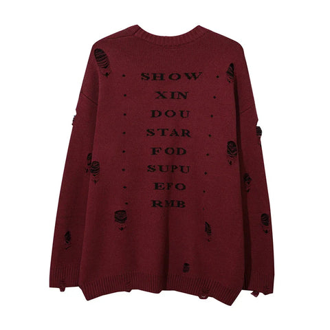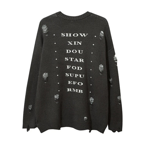 Sweatshirt Metamorphosis Retro Knit Unisex Casual Destroyed with Dark Print