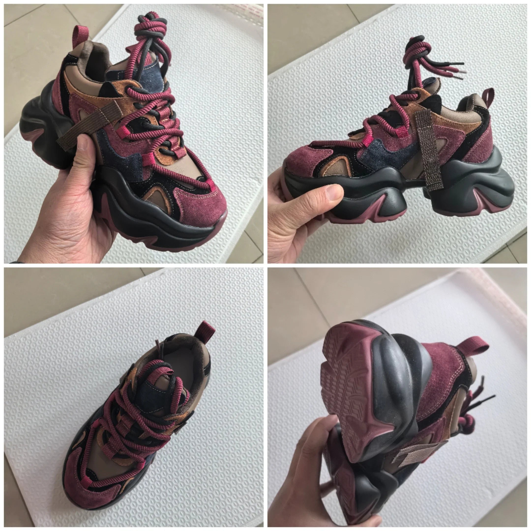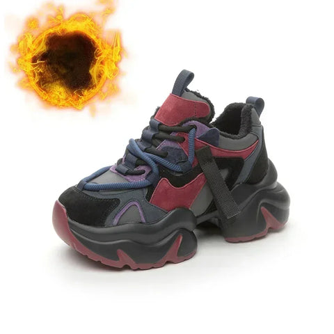 Discover these stunning fall-winter boots that combine comfort and style. Made from genuine leather and with a bold cut, these chunky sneakers are the perfect reflection of alternative fashion. With a rich color palette ranging from burgundy to deep blue, they are designed to stand out. Featuring a wide 5.5cm sole, these boots offer safety for your urban adventures while maintaining a clean and avant-garde look. The convenient side tab and sturdy lacing add to their functionality, while the plush lining keeps you toasty on cooler days. Pair them with your favorite outfit - from ripped jeans to a vintage dress - and make a fashion statement that pushes the boundaries of classic styles. Turn every step you take into an expression of your bold personality with these unique shoes.