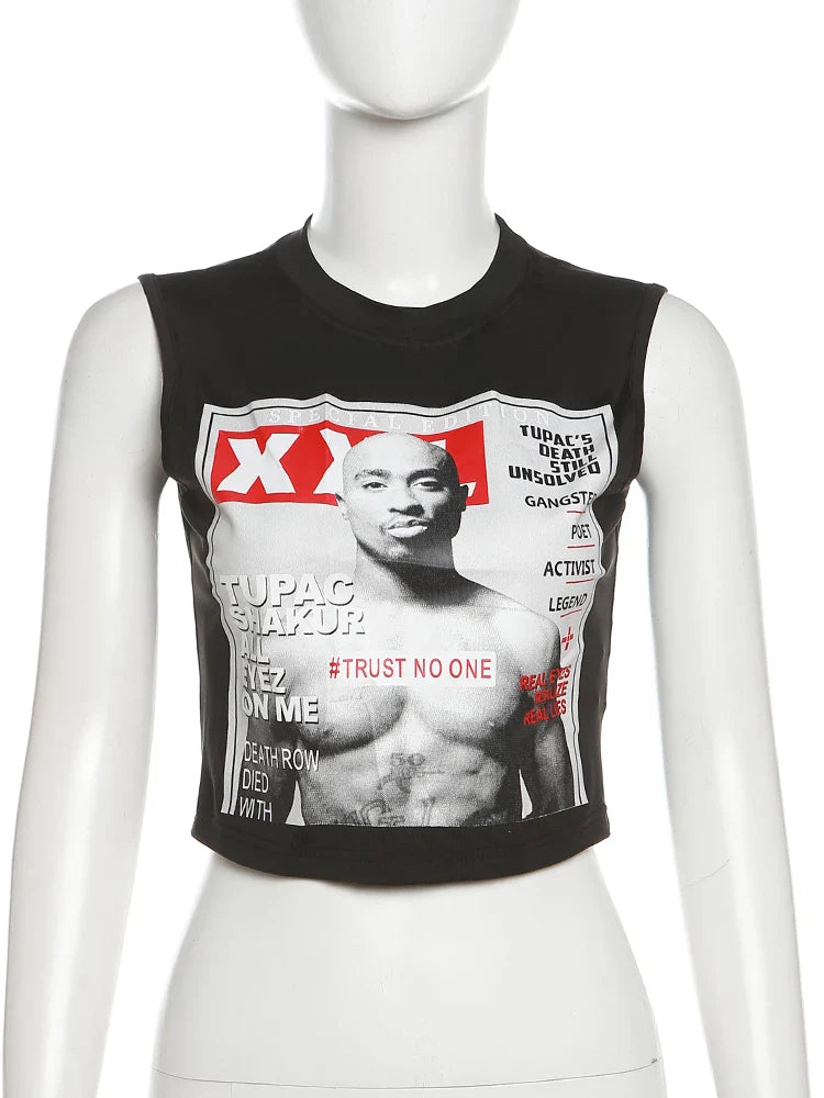 Discover the classic Weird Puss tank top, a bold piece that truly captures the spirit of contemporary alternative cultures. This tank top draws inspiration primarily from hip-hop and streetwear styles, featuring a flattering sleeveless cut and a comfortably casual look. Made from soft, stretchy cotton, it offers optimal ease of movement. This top stands out with its captivating graphic print of an iconic music figure, bringing a genuine nostalgic touch. Phrases like *"TRUST NO ONE"* add a provocative note that will surely capture the spirit of truth-seekers in fashion. The monochromatic color palette, with touches of red, allows you to pair this tank top with a variety of bottoms.